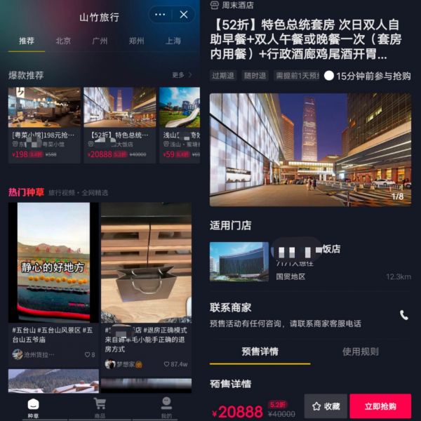 山竹旅行的推出,确定了抖音将用户的旅游消费渐渐圈定在内部的打法,实现了筛选、交易、种草都在抖音内部完成的闭环。