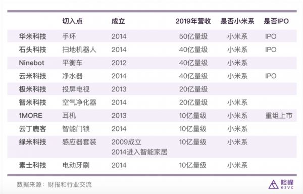 去年曾有投资机构发布过一个很有意思的观察,即从2020年倒推在过去六七年内成立,收入最高的硬件公司,十有八九是小米生态链企业。