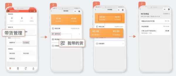 添加完成后,用户在“带货管理”界面查看带货数据和佣金到账情况。