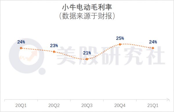 从毛利来看,目前国际运输增加的成本对整体毛利率影响不太大。据财报显示,一季度小牛电动的毛利率约为24%,毛利率水平也较为稳定。与同业相比,市场份额第一的雅迪,毛利率为10%左右,爱马台铃的毛利率也无法达到20%的水平,这方面小牛还算保有优势。
