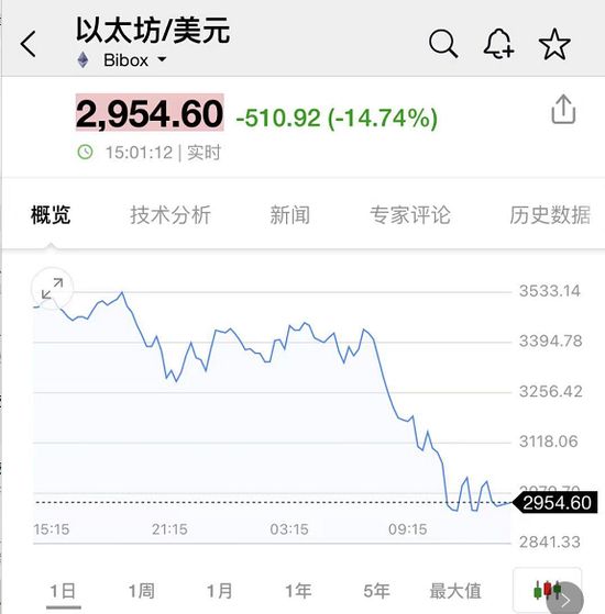 此外,以太坊价格也在5月12日达到创历史新高的4371美元后一路走跌,日内已跌破3000美元/枚大关,现报2939美元,日内跌幅超12%。