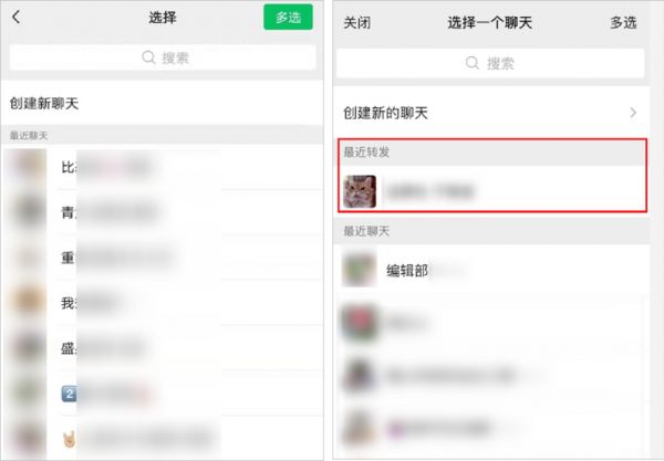 这样一来,用户更新版本后再转发内容时,就可以根据“最近转发”,快速找到想要转发的好友。