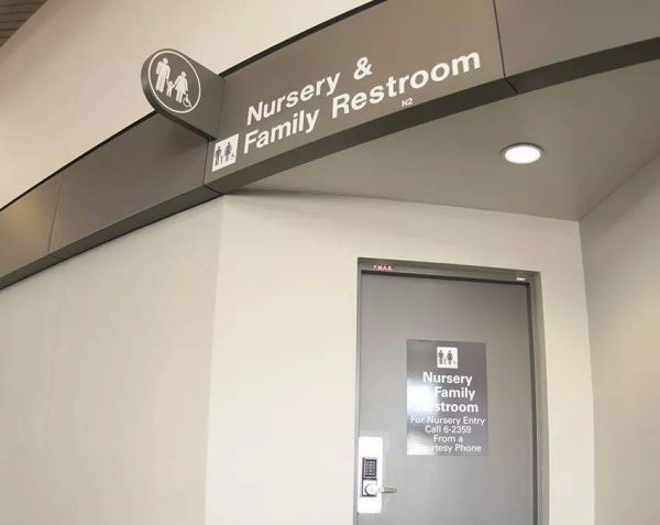 在美国,38个州都有相关法律规定,保护妇女在餐馆、商店和其他公共场所哺乳孩子的权利。美国的母婴室被称为“家庭卫生间”——family restroom,可以让父母同时带孩子使用。