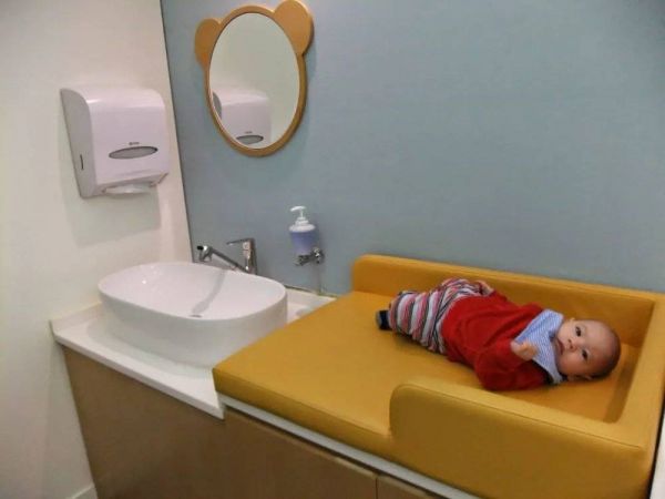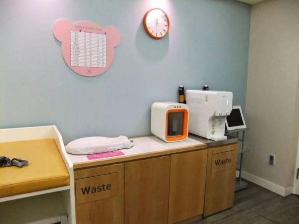 母婴室里的设备齐备,包括垃圾桶、洗手台、换尿布台、自来水和消毒过滤器、洗手液、卫生纸、椅子、插座。一些母婴室里还会配有微波炉、饮料贩卖机和尿不湿自动贩卖机。