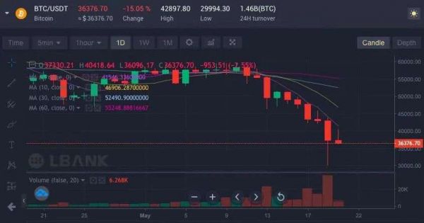 519惊魂一夜后,比特币重启下跌,跌至36000美元附近