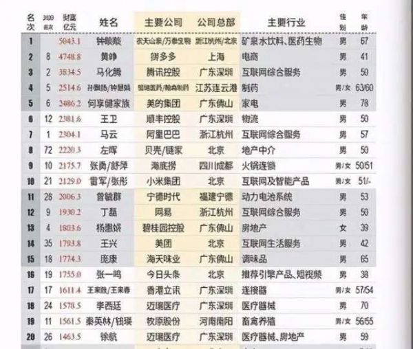2020年10月20日,以1050亿元人民币财富位列《2020衡昌烧坊·胡润百富榜》第36位。