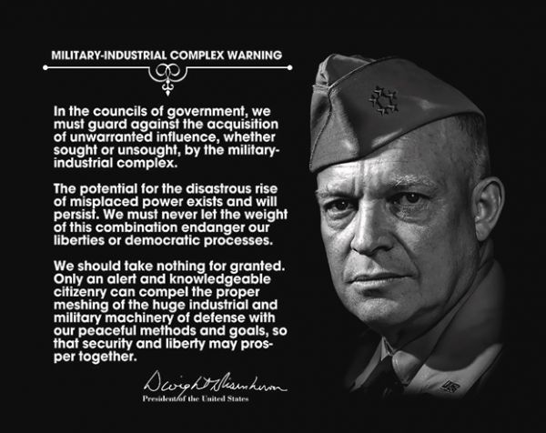 1961年1月,当艾森豪威尔总统离任时,他发表了一篇广为人知的告别演说,其中他对“军工复合体”(Military-Industry Complex)的警告至今仍然有效。