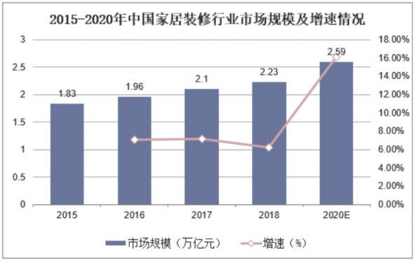 2015年家居装修整个规模为1.83万亿,2018年已经到达2.23万亿,2020年市场规模为2.25万亿,与2017年相比增长近5千亿市场,目前来看整个家居行业装修市场规模呈现为递增的趋势。