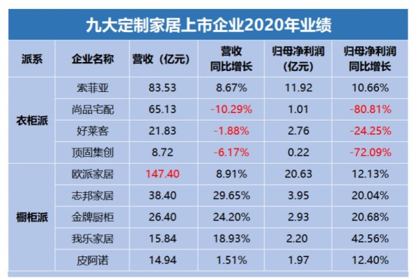 目前市面二线品牌则包括志邦家居,好莱客,金牌橱柜等,从营收来看志邦家居2020年净利润同比增长在20.4%,而好莱客则下降24.25%,我乐家居的净利润高达42.56%,增长幅度远超其他8家。