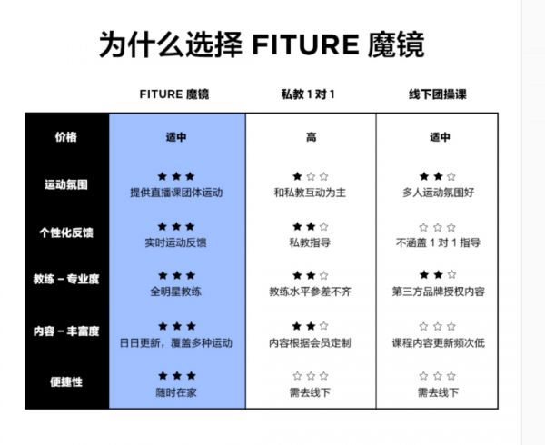 FITURE在国内的策略,其实也给了其它做镜子的公司很大融资空间。其他公司和FITURE在同一起跑线,甚至数据更好,估值更低,股权结构也简单。未来如果有更多资本追类似方向,也不奇怪。