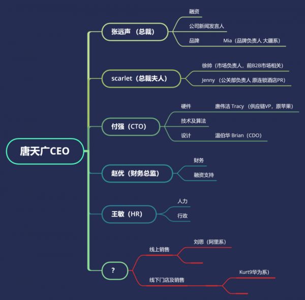 Scarlet常提出各种产品需求。需求提到成都的产研团队,有时候会碰到COO唐宇瀚的夫人——一位接产品需求的数据分析师。员工都尬这种微妙时刻,隐形老板太多了,两位老板夫人有时候也能PK起来,做事的人不知道怎么汇报工作。
