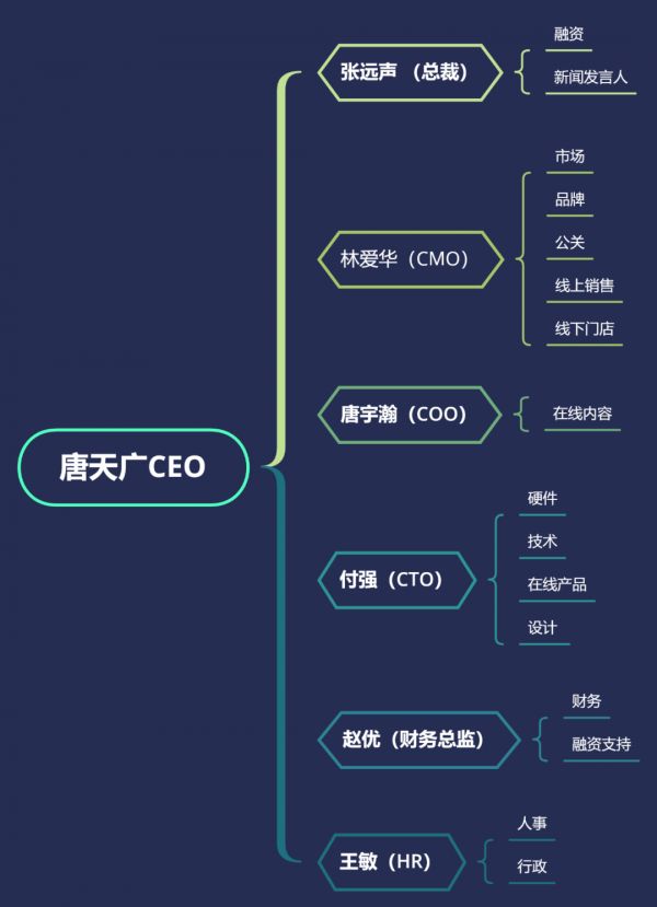 这家公司COO和总裁之间管理边界模糊,并没有明确强调汇报关系。但CMO林爱华是明确汇报张远声的。