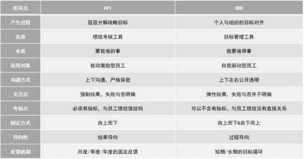 事实上,OKR仅仅是一个目标管理工具,而非绩效考核工具,OKR和KPI虽然相近,但是二者却在本质上存在诸多差异。