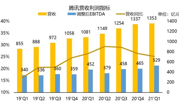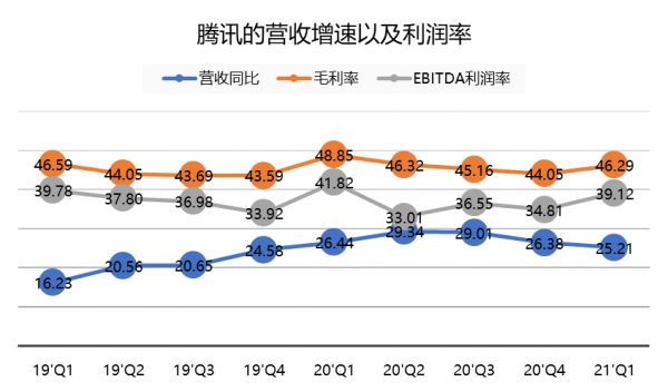 好比游戏业务,21Q1的同比增速降至低17%,又创下版号恢复以来的低点。大家也都知道20Q1基数高、新游戏难以复刻《王者荣耀》。但这对腾讯来说并不是坏事,本身渠道优势一直存在,参与行业竞争、让行业多元化,反而会降低垄断风险。
