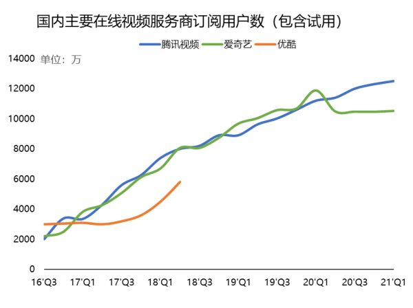 腾讯视频的订阅会员数同比增加12%,达到了1.25亿。要知道,2020年Q1已经是非常高的基数了,隔壁爱奇艺也特意说明了这点,很小心地公布了0.9%的同比增速,结果还是小巫见大巫。