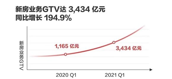 新房交易GTV为3434亿元,同比增长194.9%。