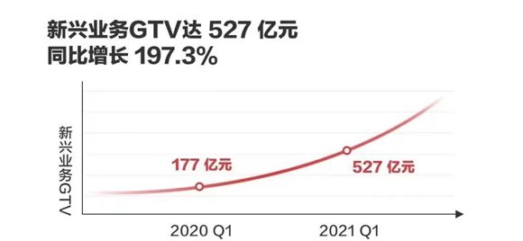 新兴及其他服务GTV为527亿元,同比增长197.3%。