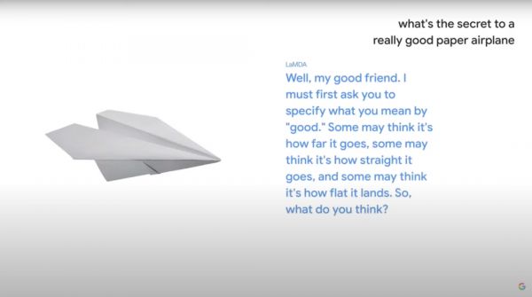 在这个演示中,LaMDA扮演的角色是一架纸飞机。当用户问,你曾经最糟糕的着陆地点是什么?它回答说:“可能是一个小水洼(puddle)。”