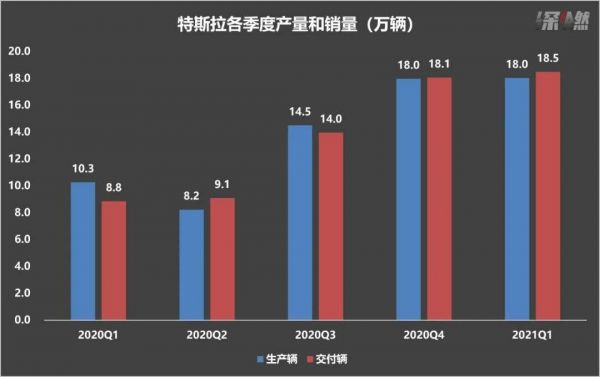 特斯拉各季度产量和销量