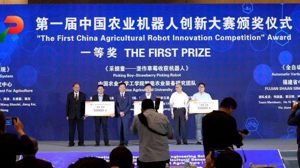 经过激烈的角逐,来自北京农业智能装备技术研究中心的“设施园艺机器人作业系统”、中国农业大学的“采摘童——垄作草莓收获机器人”以及福建省中科生物股份有限公司的“全自动垂直农业生产系统”分别拿下三个“一等奖”。