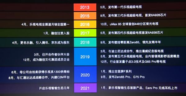 2019年的时候,乐融致新刚刚开启了独立发展的道路,并举行首次发布会推出第二代互联网电视,并与腾讯、京东、联发科组成战略合作伙伴,为LeTV超级电视业务拉开序幕。