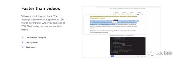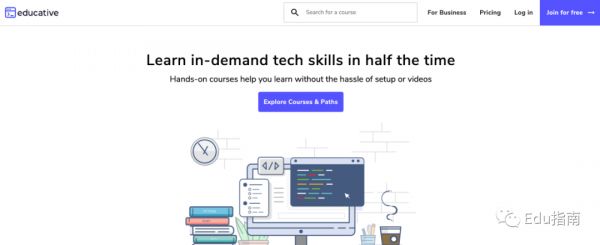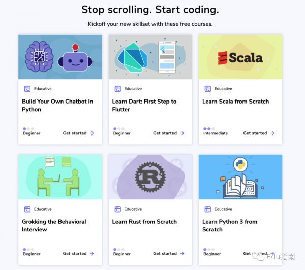 Educative是一个在线学习平台,可通过交互式课程教学编程。这些课程是基于文本的,使学习者可以直接在课程门户中键入他们的代码,因此开发人员可以通过主动编写代码、学习代码。