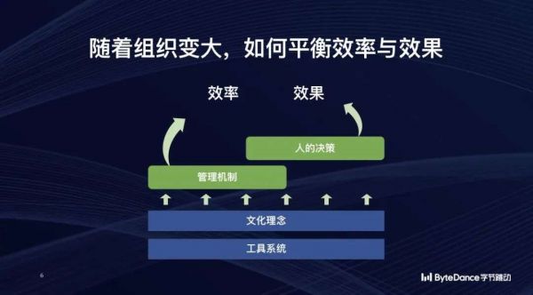 梁汝波称,字节跳动的做法包括:一,建立基本的管理制度来保证管理效率;二,重视文化建设、理念对齐,多增加共识,少细化规则;三,通过工具系统保障管理动作落地,并善用数据来辅助更好的决策;四,最终还是要让管理者对管理决策负责,来保证管理有效性。