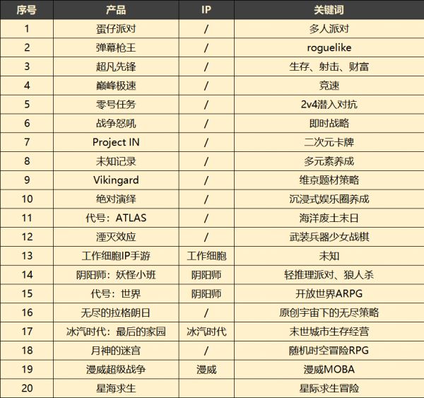 这之外,外部IP有漫威影业的MOBA手游《漫威超级战争》,日漫《工作细胞》以及硬核生存经营的《冰汽时代》。