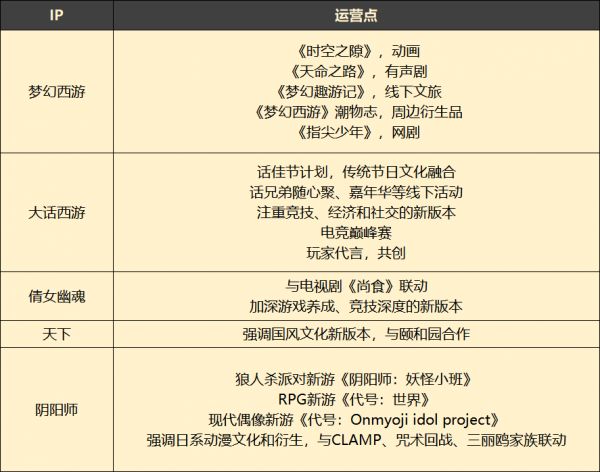 比如在IP运营上,网易游戏目前依旧是五大自有IP,整体战略还是在线上多领域内容衍生、文化合作,线下做电竞、玩家活动,形成线下社交,持续开发用户价值。(逆水寒现在的影响力还是有限。)