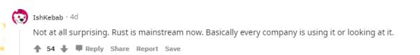 @Ishkebab:“意料之中,毕竟Rust是现在的主流,基本上每个公司都在使用或关注它。”