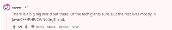 @rapsey:“世界很大,除了SpaceX等科技巨头会用Rust,其他的大部分都还在使用Java/ C++ /PHP/ C# /Node.JS。”