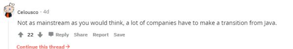 @Celousco:“不像你想的那样主流,许多公司必须从Java开始过渡。”