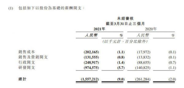 行政开支由2020年同期的人民币3.082亿元增加128.2%至2021年第一季度的人民币7.034亿元,占总收入的百分比由2.5%增至4.1%,主要是由于为支持业务发展而增加行政管理人员数目及增加以股份为基础的薪酬开支导致雇员福利开支增加。