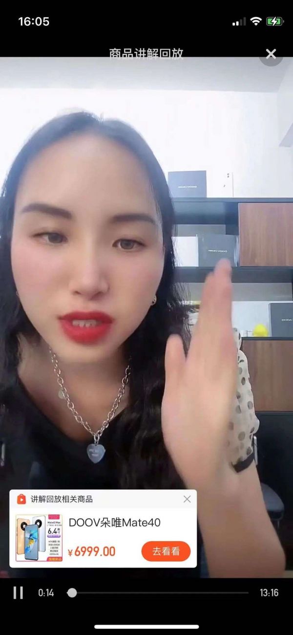 接下来主播放话,要给“家人”讲解一下这款手机。上架后,页面显示mate40并不是华为mate40,而是名为朵唯mate40。