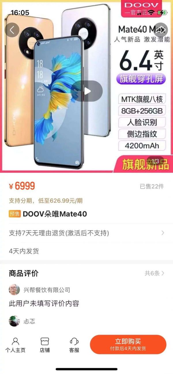 老铁们无动于衷,主播说话间,老铁已经溜走了大半。AI蓝媒汇点开底下的购买链接——这款名为朵唯的mate40像极了华为的同款手机,功能也异常强大,八核、8G内存,256G储存、四颗摄像头……