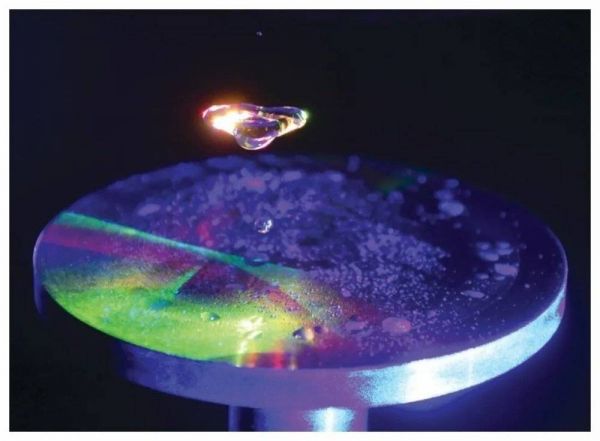 声学悬浮的水滴在几乎没有剪切力的情况下旋转时产生共振、汽化并重新组合。创作者伊芙琳·多姆尼奇(Evelina Domnitch)和德米特里·盖尔范德(Dmitry Gelfand)将力场(2016)描述为挖掘声音的三维空间、难以捉摸的水的物理性质以及天体和亚原子物体的旋转动力学。