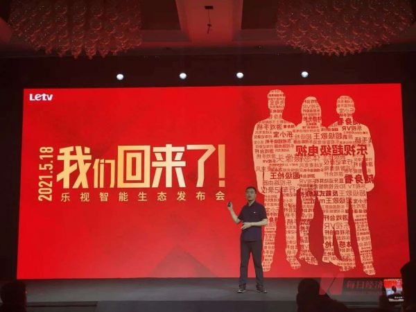 每经记者 张虹蕾 摄乐视智能生态发布会现场海报变更为“我们回来了”