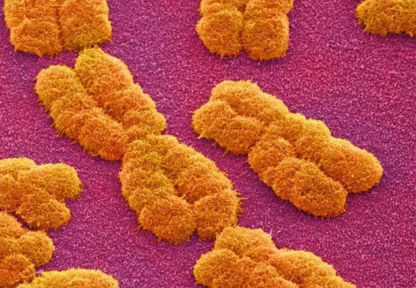 人类染色体的扫描电子显微镜成像。来源:Power and Syred/SPL