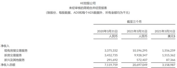 一季度,新房业务的营收从2020年同期的35亿元增至99亿元,增幅187.6%,全面落后于二手房业务。二手房业务贡献的营收为102亿元,增速为202.1%。