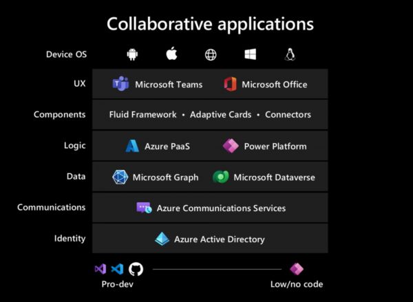 微软认为,随着疫情的席卷,人们的工作、生活方式发生了巨大变化,混合工作制将常态化存在,未来每个客户和合作伙伴都将对远程协作有更高的需求,因此,人们需要一套全新的应用程序集合,将应用程序构建和交互的方式进行结构性更改。