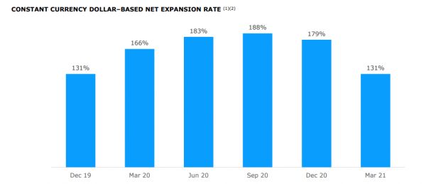 活跃客户数量的增长为营收增长带来了利好,而且Q1季度声网的固定汇率金额续费率为131%——客户不但续费了相应的服务,还追加了付费规模,这或许也是声网连续八个季度营收增长的原因之一。