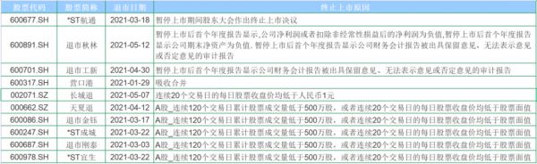 除了这4只股票,2021年以来,A股已有10家公司退市,包括ST航通、ST秋林、ST工新、营口港等。
