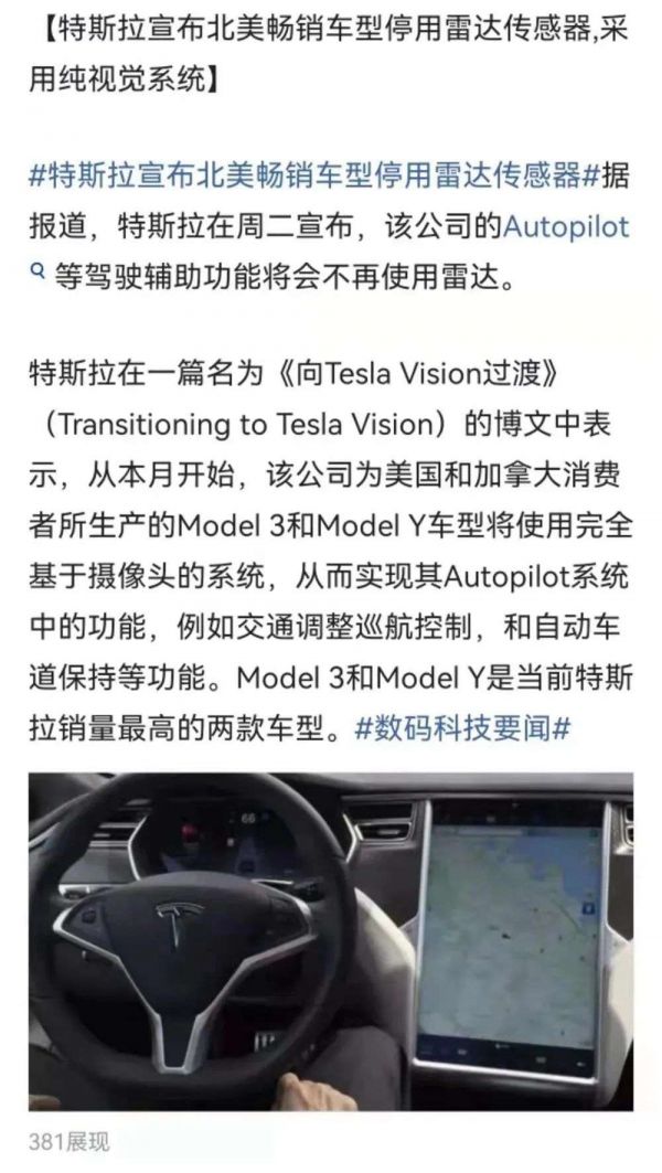 这意味着,特斯拉未来将单纯依靠视觉系统来实现自动驾驶功能。