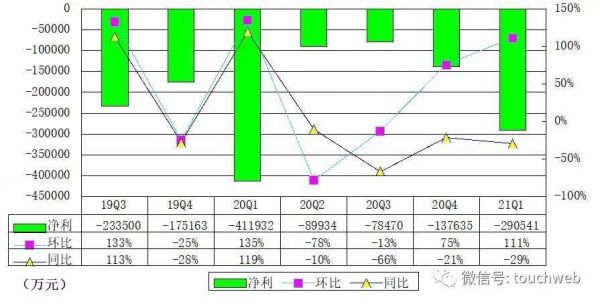 按非美国通用会计准则,拼多多2021年第一季度运营亏损为31.741亿元(约4.845亿美元),而上年同期运营亏损35.879亿元。