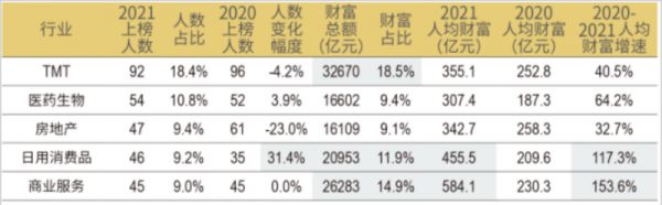 TMT今年上榜人数达到96人,在前10名中占据4席,入榜人数最多。 马云、马化腾、黄峥和雷军等互联网大佬,成为新时代的财富英雄。