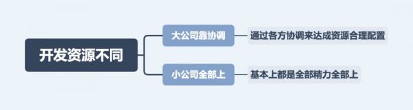 开发资源的分配,影响着产品在推进过程中的难易程度。大公司靠的是协调,小公司基本上没有选择。