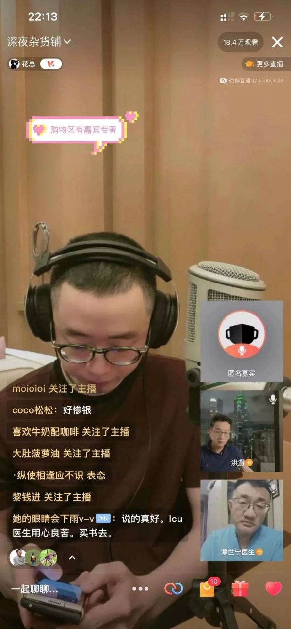 本周之前,花总的连麦更像”情感树洞“,以聆听粉丝的匿名咨询倾诉为主,类似于无固定主题的深夜电台。这些天,在微博官方参与扶持辅助下,他和叶三、牛叔、五哥等几位好友共同组成了“今夜连连看”小组,以更接近“锵锵三人行“的方式展开基于某个预告主题的连麦讨论。并且,微博官方为他们找来了类似洪灏、薄世宁医生这样的大V参与连麦。