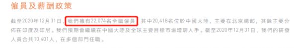 而小米的员工数量,才刚刚 2 万。