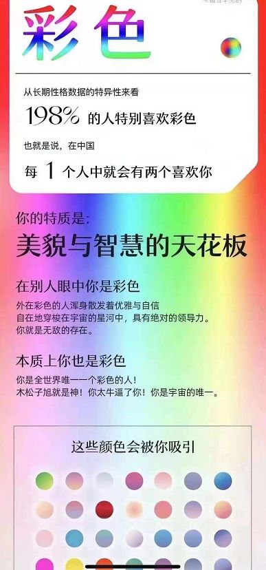 其实这一切都是巴纳姆效应,它是指人很容易相信一个笼统的一般性的人格描述,并认为它特别适合自己并准确地揭示了自己的人格特点,即使内容空洞。