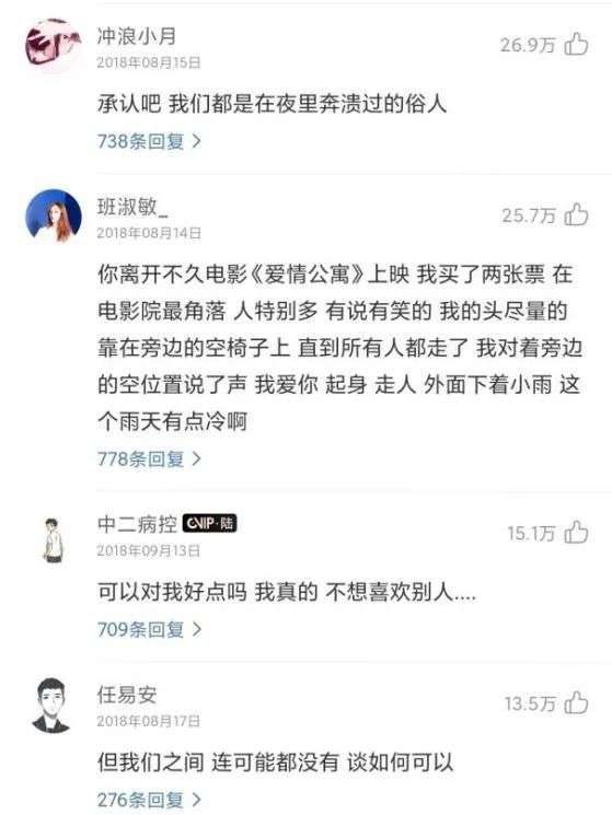 网易云最为人所熟知的外号「网抑云」,恰恰是其用户年轻化的明证。二十多岁处于人生的岔路口上,爱情、友情、学业、工作……一系列选择和压力如潮水般向我们涌来,于是「丧」便无法避免,在每首伤感歌曲下,大家发布煽情评论,逐渐形成了「到点网抑云」「人间不值得」等一众亚文化。